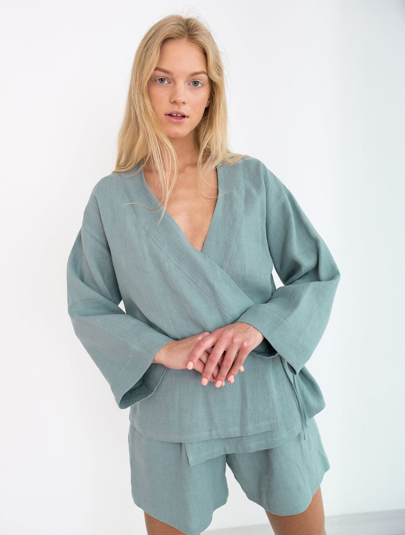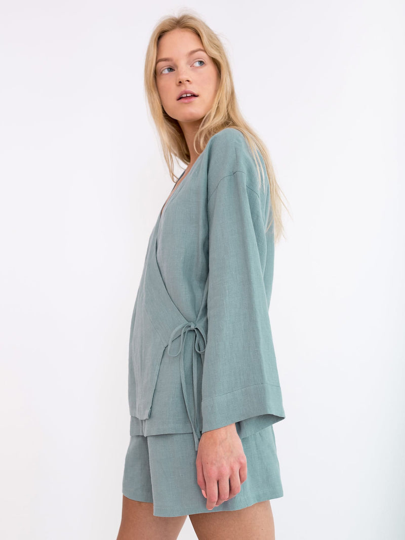 Linen Wrap Top and Shorts Set
